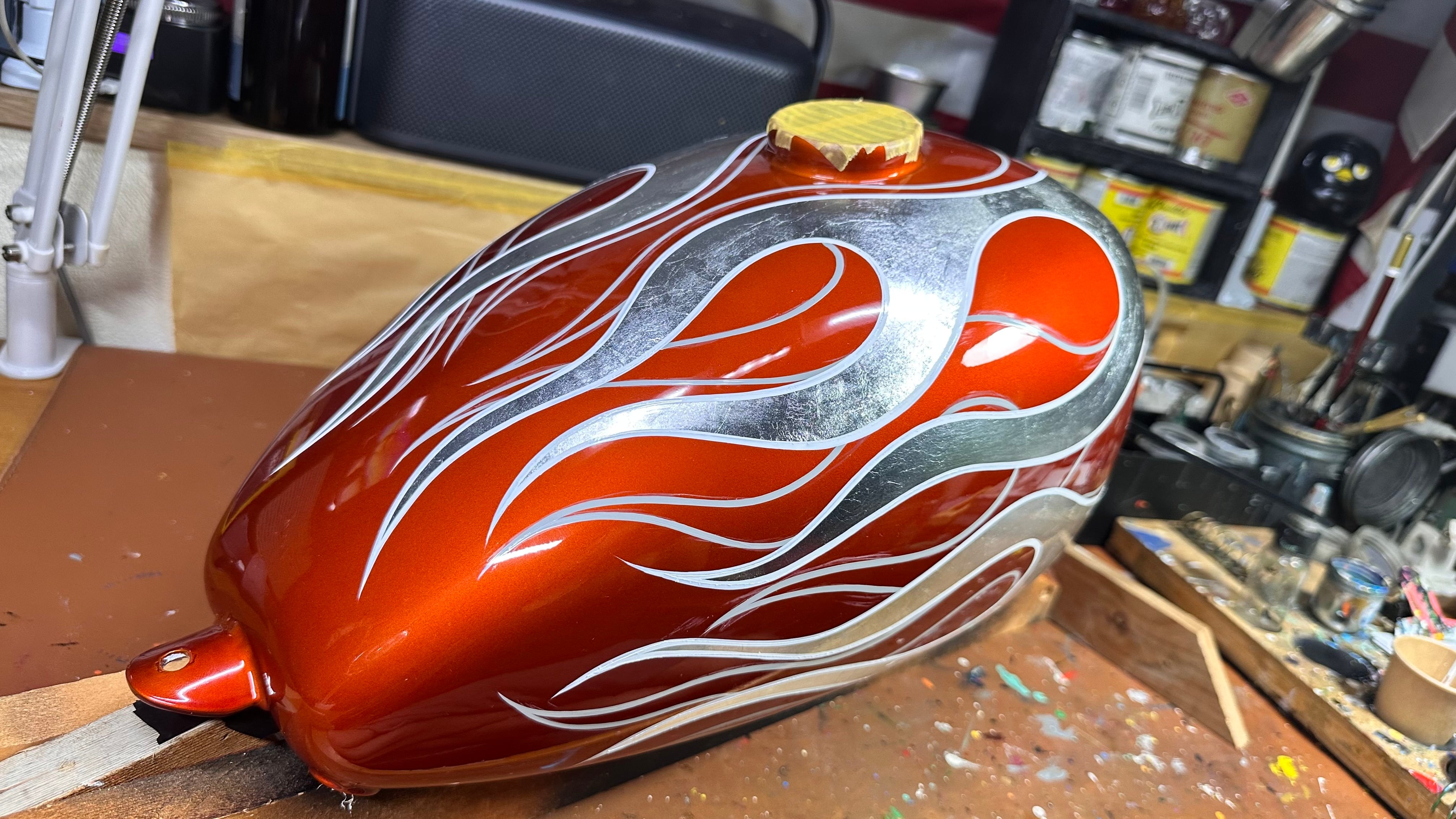 HOTROD CUSTOM SHOW 2024出展作品。イベント当日外国人の方が購入希望でしたがベースに鉄板を使用していて先が尖りすぎてるため飛行機に持ち込めない可能性があったため断念したという小ネタ付き.....作品のテーマはペイントの魅力 コレクションにいかがでしょう!! 【サイズ】約30×70cm 【材質】鉄 壁掛け用の穴空いてます 【注意事項】 販売している商品は仕入れの段階で細心の注意を払って検品していますがアンティーク雑貨等に関しましてはキズや汚れ等はご了承ください。 商品に描かれているものは全て手描きです。フリーハンドで描く特性上どうしても下書きの際の細かい傷や指紋等が付いてしまう可能性があります。取れる汚れに関してはちゃんと取りますがそういった点も踏まえて購入をお願い致します。 新品の商品も含め商品画像にない明らかな破損などに関しては返金保証致します。 塗料の特性上、触ったくらいでは落ちませんが爪で引っ掻いたり擦れ等にはあまり強くありません。ご注意ください。 光の加減などにより写真と実物の色が違って見える場合がございます。そういった理由でのクレームは対応できませんのでご理解ください。 【ピンストライピングとは】 ピンストライピング(Pin striping)とは、ピンストライプ(pin stripe)と呼ばれる塗料などで描いた極細の線で作る装飾のこと。ピンストライプブラシという特殊な筆を使う。自動車、オートバイ、自転車、ボート、サーフボードの表面をカスタムメイドする。フリーハンドで描く手法。 【ショップ情報】 気に入った雑貨などを仕入れフリーハンドでペイント施し販売しています。 お手持ちの小物やバイク、車などに描くオーダーにも対応しております。全てがキャンパスです。是非ご相談ください。