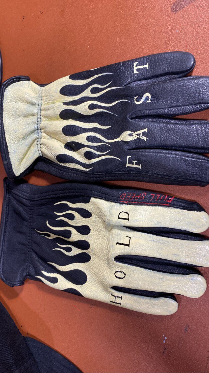 【商品説明】レザーグローブ にフレイムスと"HOLD FAST"